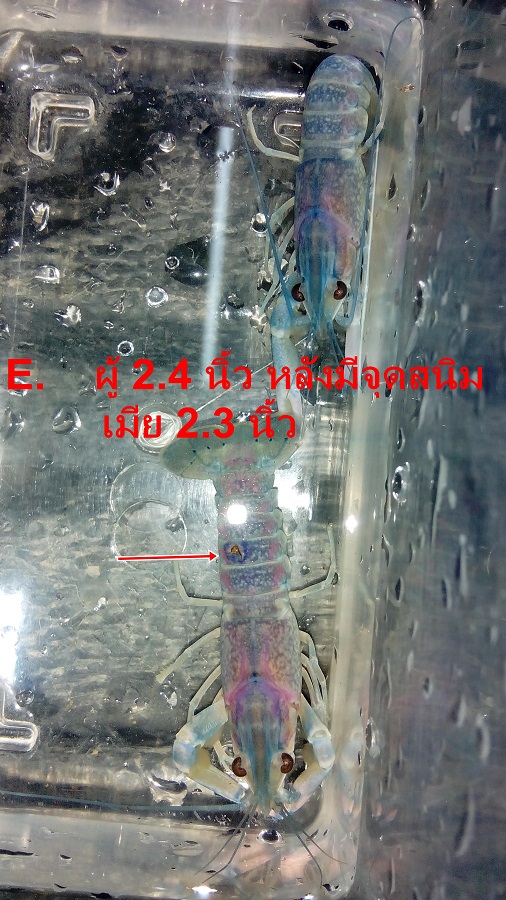 D. ผู้ 2.4 เมีย 2.3 คู่ละ 270 บาท ตัวผู้ก้ามเดียว