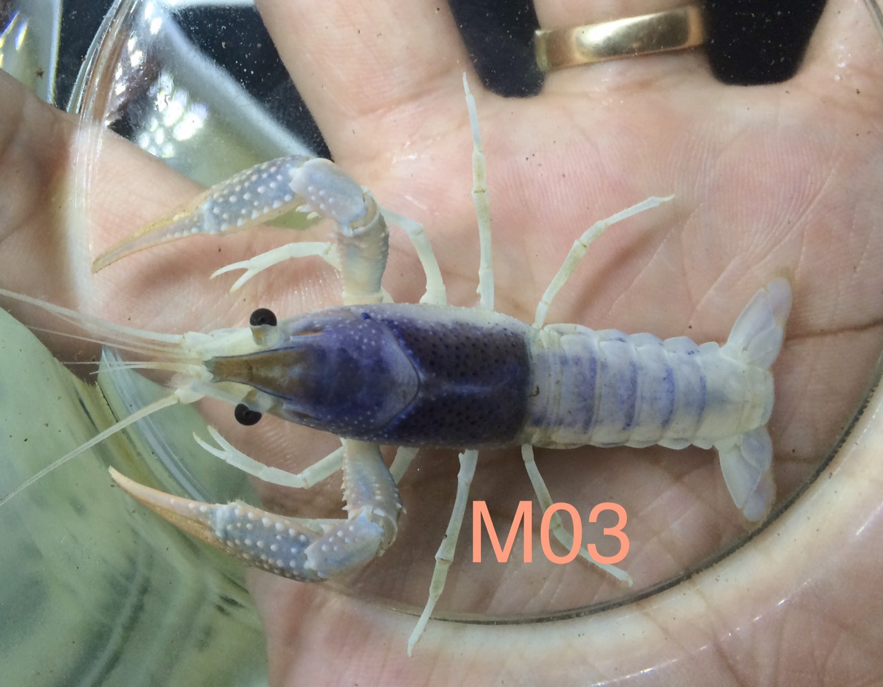 5. รหัส M03 เพศ ผู้ ขนาด 2.4 นิ้ว ราคา 1400 บาท (โตมาคาดว่าก้ามน่าจะสีออกน้ำเงินเมทัลลิค)
