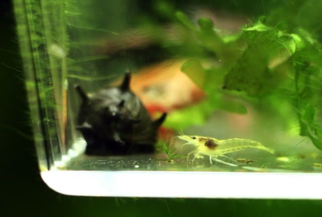 หนึ่งในสองตัวเมียที่มีไข่อยู่ที่หลัง กำลังกินเตตร้าบิทอย่างเอร็ดอร่อย ติดกันด้านหลังคือหนึ่งในว่าที่สามี