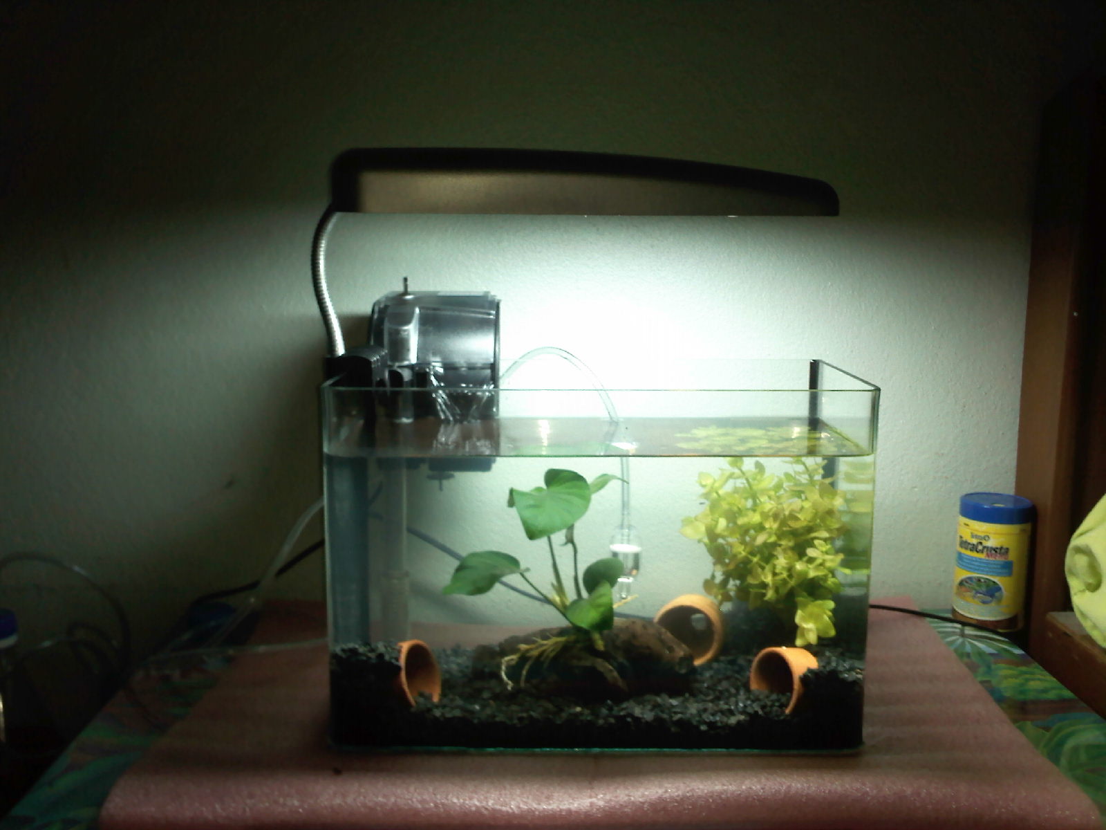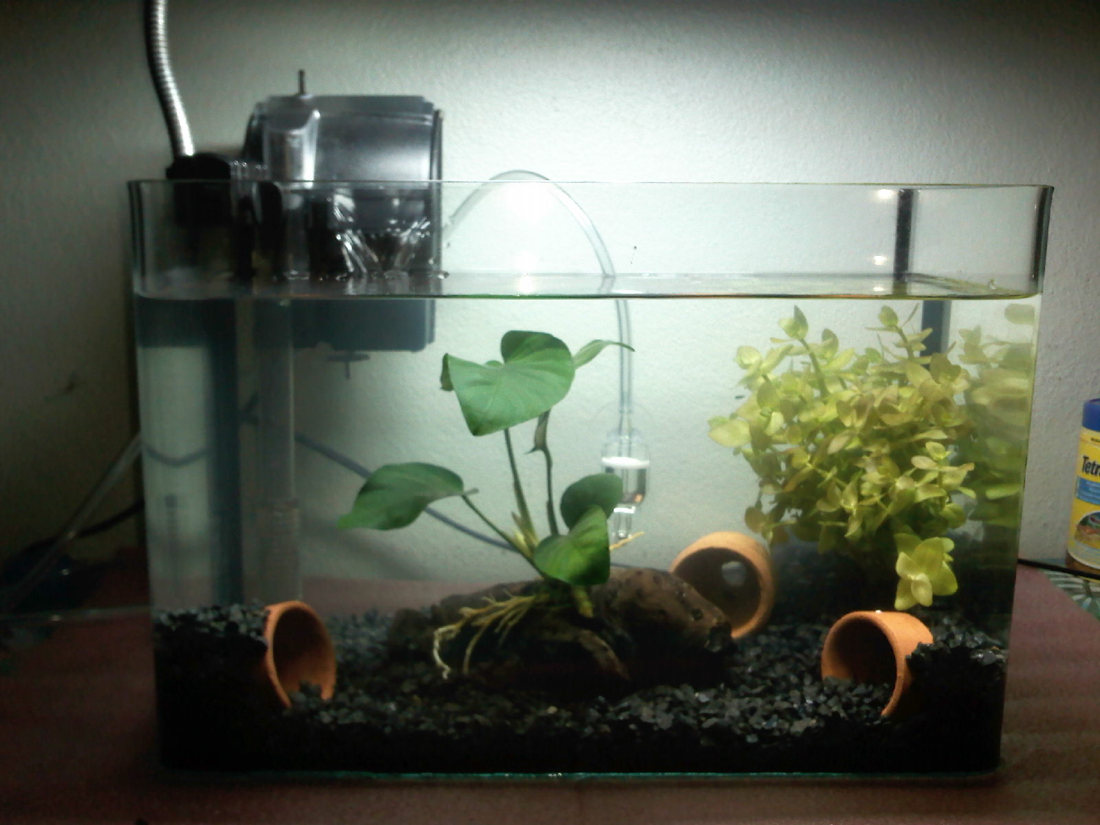 2.พวกกระถางนั่นเอาออกดีกว่าครับ ดูไม่ค่อยสวย ถ้าจะเลี้ยงกุ้งแคระ ลองหาเป็นถ่านไม้ไผ่เป็นแท่งๆมาใช้ดูครับ