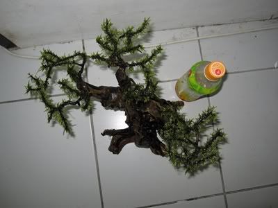 ต้นบอนไซต้นนี้เป็นแกนไม้ (บอนไซบางชนิดไม้เนื้ออ่อนแช่น้ำละลายแน่นอน ยิ่งกื่งเยอะๆ )