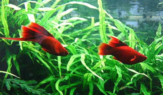 ใส่สาหร่าย หรือต้นไม้ปลอมลงไปสักหน่อย เพื่อให้ลูกปลามีที่หลบซ่อน เมื่อเกิดออกมา (ปลสในกลุ่มมอลลี่ มีพฤติกรรมกินลูกตัวเอง)