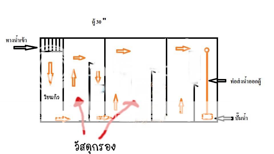 น้ำเข้ากรองแล้วก็ผ่านใยกรองหยาบ --> พัมมิส --> ใยกรองละเอียด --> ปั้มน้ำเข้าตู้