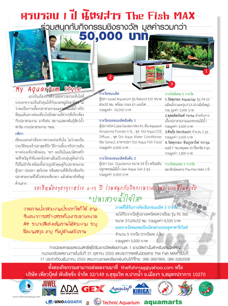 ดูดีๆ มันมี 2 ข้อแคมเปญ asspain asspain ไอ้แคมเปญแรกเค้าให้ส่งภาพถ่ายตัวเองคู่กับปลาตัวโปรด ตู้ปลา บ่อปลา หรือสถานทีเกี่ยวกับปลาสวยงามที่ได้ไปเที่ยวมา แล้วก็เขียนบรรยายความประทับใจแนบมาด้วย ส่วนไอ้วาดภาพระบายสีมันเป็นของเด็ก