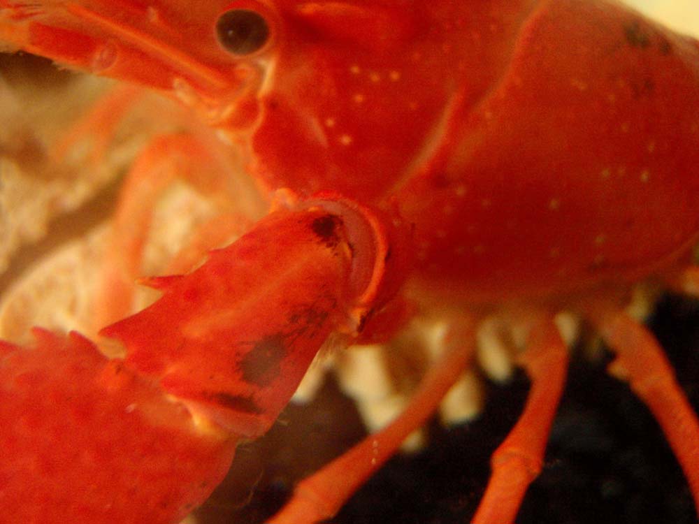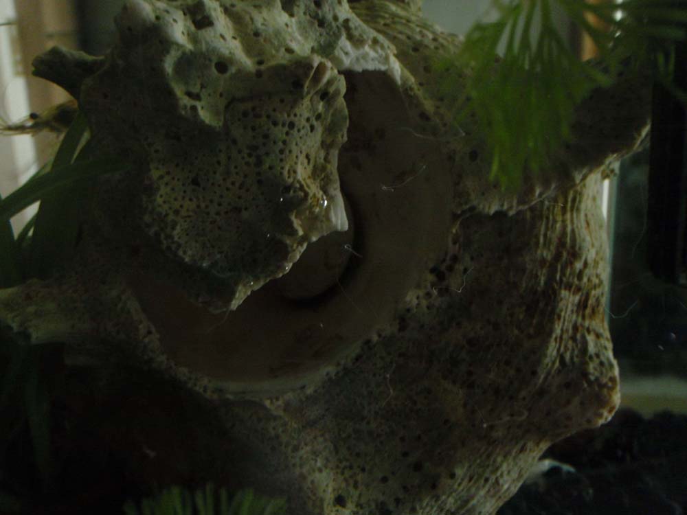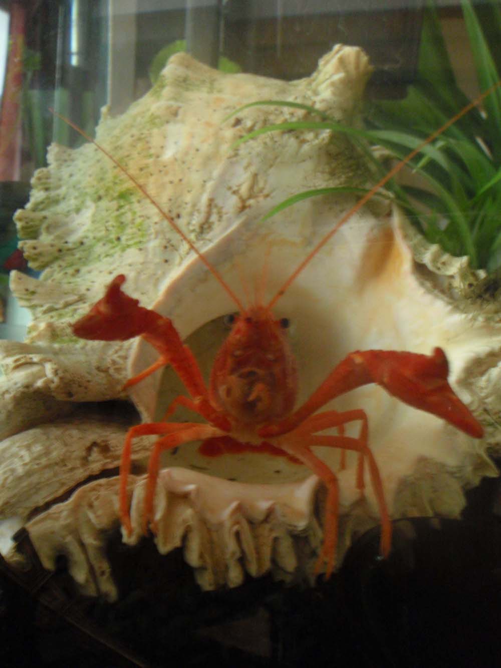 มีเดือนที่แล้วครับ มันเข้าไปติดหอยสังข์ แล้วมันก็ออกมาไม่ได้ ติดอยู่ อาทิตย์กว่า (ตอนนั้นกุ้งอยู่บ้าน แต่ผมอยู่ที่ ม.ครับ แม่โทรมาบอกว่ากุ้งหาย 55)