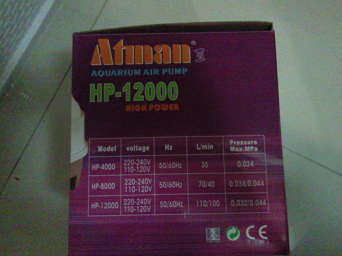 ส่วนปั๊มลม Atman HP-12000 ราคา 2000 บาท เช่นกัน