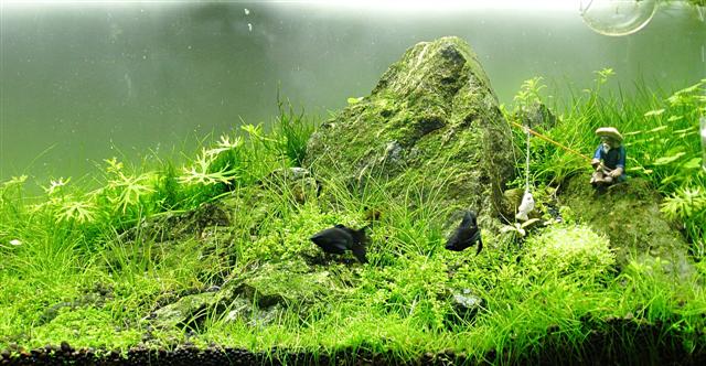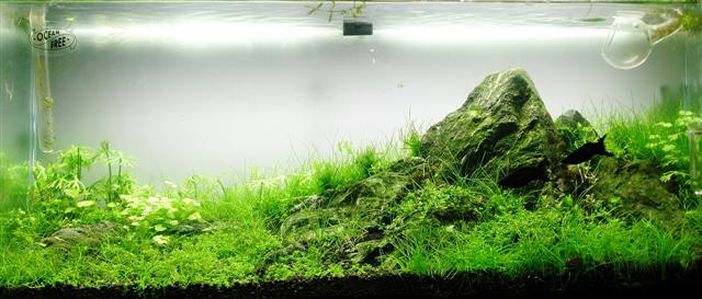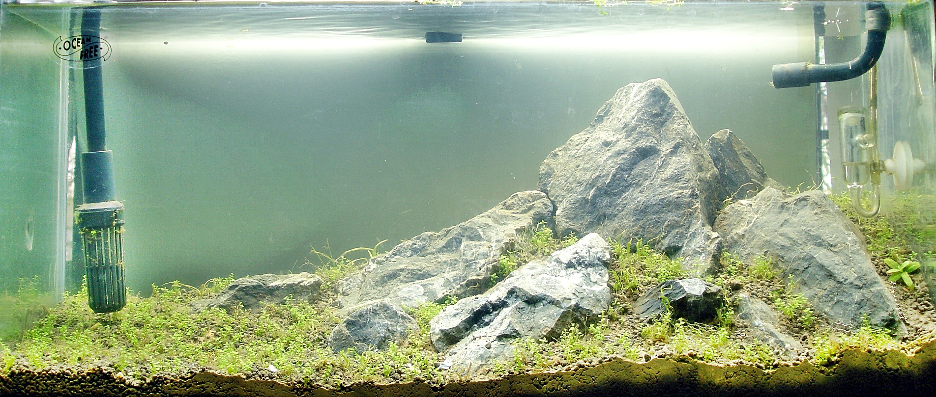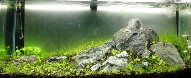 วัศดุรองพื้นใช้อควาเบส1ถุง ถุงเล็กสุด พัมมิสสองถุง ไว้หนุนด้านใต้ก้อนหิน   ดินใช้ดินเอดีเอเก่า ทับชั้นนึง แล้วเอาดินเอดีเอใหม่มาโรยทับ  หลังจากปลูกไปทีแรก ตะไคร่ขึ้นเยอะหน่อยเลยอาศัยเปลี่ยนน้ำบ่อยหน่อย จากนั้นหวีดจิ๋วที่มันชอบลอยเลยเอา  ดินblack earth มาโรยทับหวีดเกาะดีตะไคร่ไม่ค่อยมี