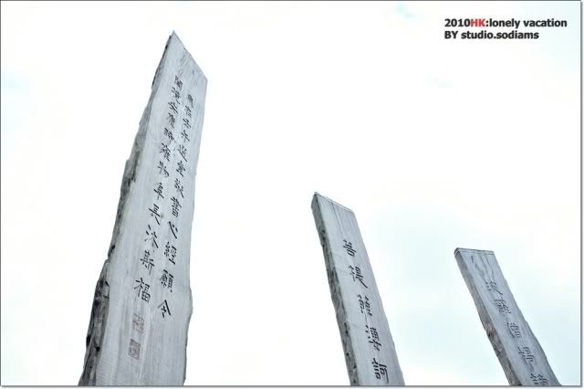 มีคำสอนต่างๆ สลักอยู่ทุกต้น โดยปักเป็นเลขแปดซึ่งเป็นเลขฮวงจุ้ยที่ดี เป็นอนันต์  [แด๊นซิ่ง]