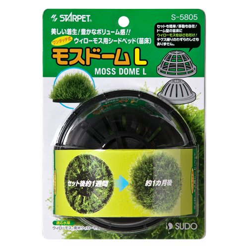 Moss Dome L มอสโดมใช้สำหรับเป็นที่ยึดติดของมอส ใช้งานง่าย ไม่ยุ่งยาก แค่วางมอสลงบนฐานโดมให้เต็มพื้นที่ แล้วครอบด้วยตะแกรงฝาโดม แล้วเลี้ยงซักระยะมอสจะแทงยอดออกมาปรกคุมโดมพลาสติก ให้ความรู้สึกเป็นธรรมชาติ ไม่รุดง่าย ไม่ส่งผลต่อค่าน้ำ ขนาดเส้นผ่านศูนย์กลาง 11.5 ซม.ราคา 390 บาท