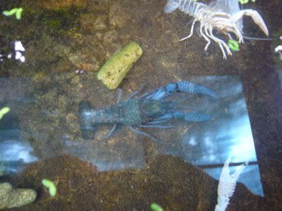 เอ้ย นั่นมันเหมือนกุ้งเอเลี่ยนเลยอะ คราบเก่า ออกจะฟ้าอ่อน ๆ แปลกดี  (ดุ๊กให้กุ้งกินไรอะ ทำไมได้สีนั้น (หรือจับไปย้อมสี) ) หุๆๆ ขำๆ