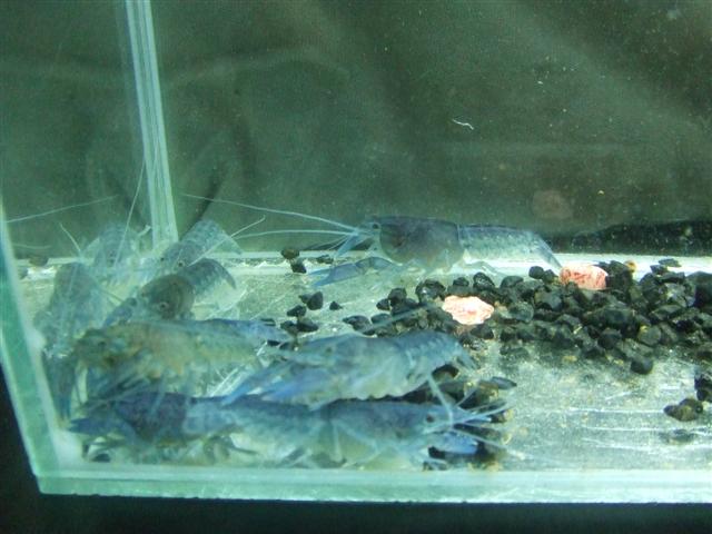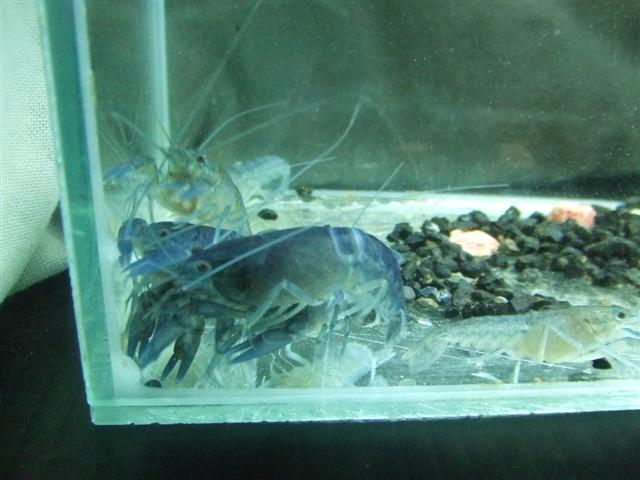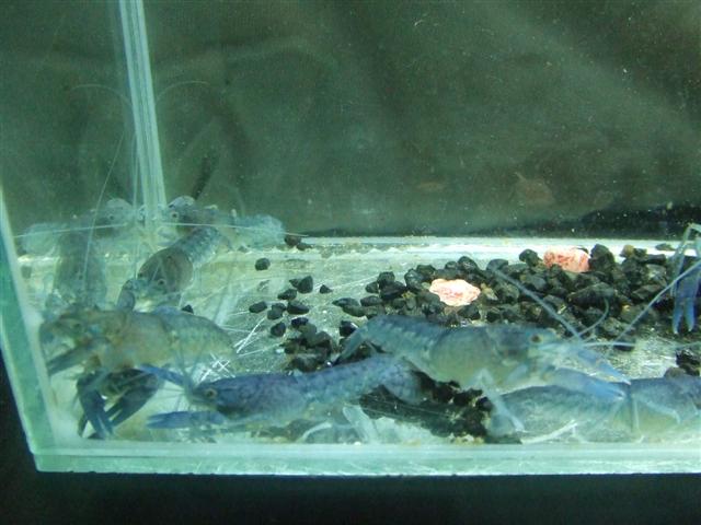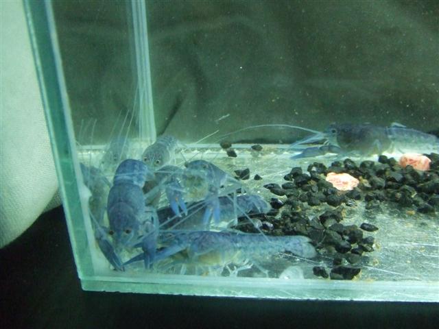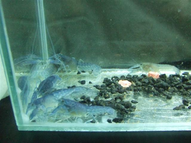 ลูกกุ้งเป็นครอกเดียวกันกับกุ้งชุดประมูล แต่เลี้ยงคนละที่ พวกสีฟ้าเลี้ยงในตู้ตั้งแต่ เด็ก ๆ