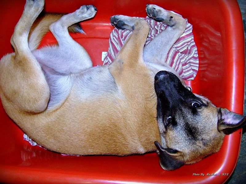 ถ้ามันได้ยิน มันจะเอาขามาเขี่ยๆ แล้ว เห่า ( คงจะบอกว่า กูรู้นะมรึง ) [mo_001]