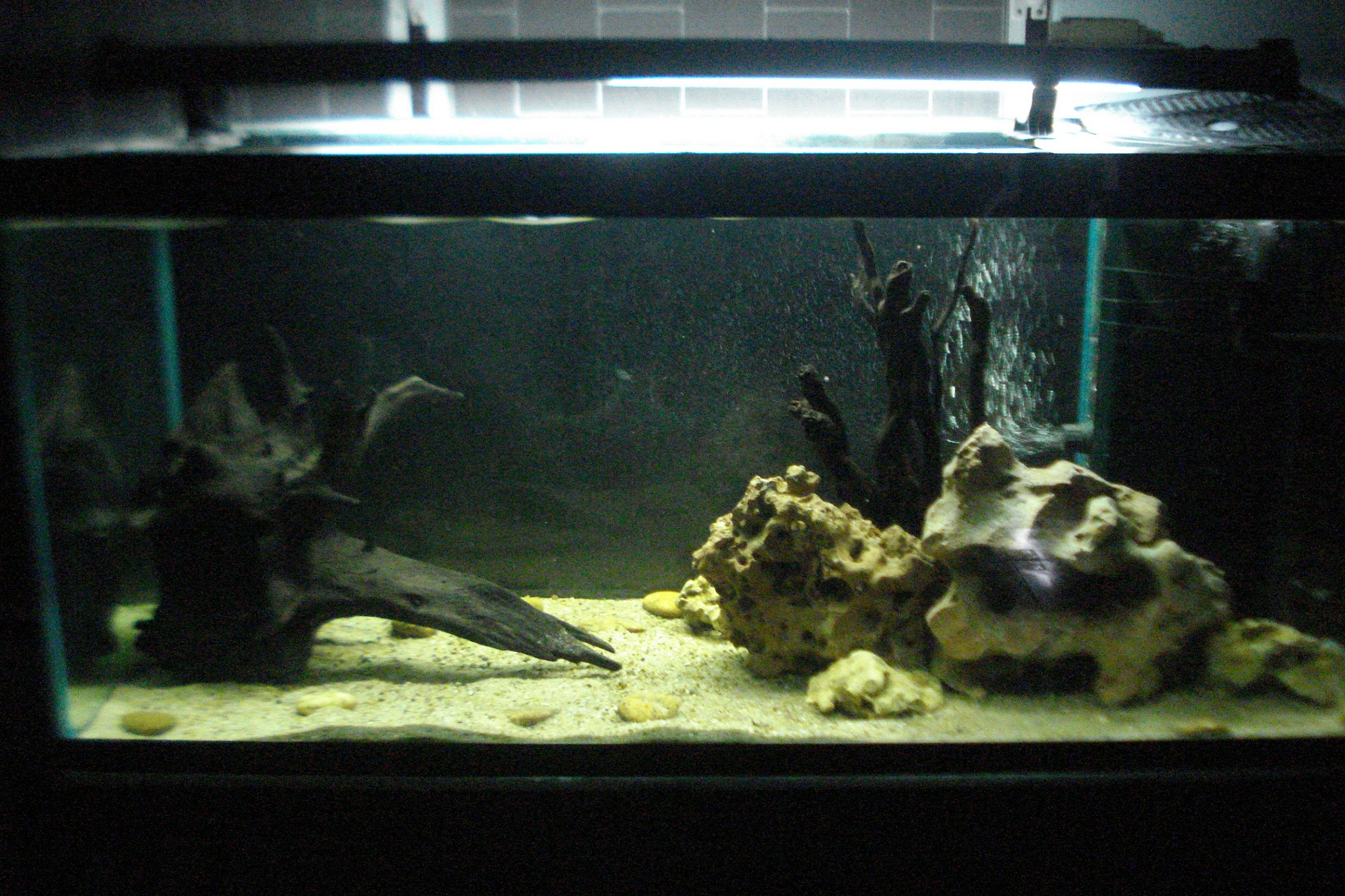 ส่วนใส่ปลาอะไร>>> มีขอนไม้ มีหิน [งง] ลองไฟร์เม้าท์ดูครับ สักฝูง....