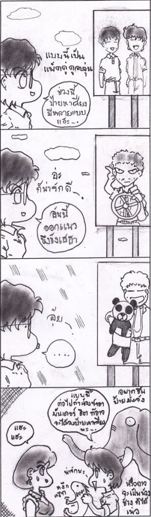 การ์ตูนตอนนี้มาช้าหน่อยนะครับ เนื่องจากร้านสแกนราคาย่อมเยาแถวบ้าน ( 5 บาท ) เครื่องเสีย วันที่ว่าจะไปสแกน เลยช็อตนิ่งไปนาน แถมฝนก็ตกอย่างหนักเกือบทุกเย็นช่วงนี้ ว่าจะออกไปสแกนหน้าปากซอย ก็เลยไม่ได้ไปซักที เฮ้อ จนเกือบจะต้องเลือกตั้งกันแล้ว ถึงคิดว่าต้องหาสแกนให้ได้ละหนอ อุตส่าห์ตั้งใจวาดมา เลยเสียไป 15 บาท อิอิอิ แต่ไม่เป็นไรหนอ ก็จัดการกันไป เชิญรับชมได้เลยเด้อครับเด้อ