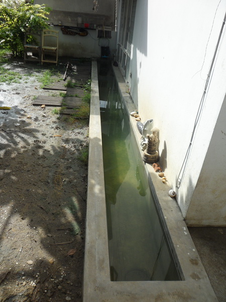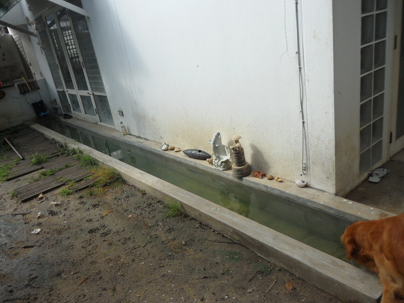บ่อ เป็นบ่อปูนครับ ขนาด กว้าง 15 นิ้ว ยาว 7 เมตร ฝังลงไปในดินติดกับตัวผนังบ้านครับ..