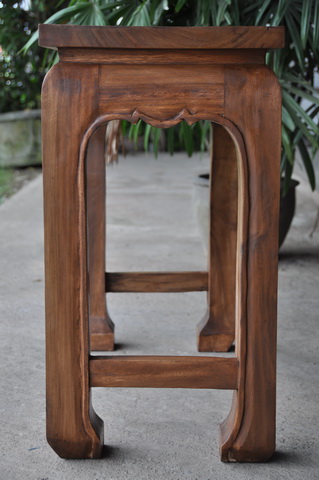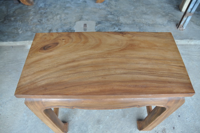 ไม้แผ่นบนหนาไม่ต่ำกว่า 1 นิ้ว  /  ขาเป็นไม้หน้า 3-4 นิ้ว / มัเซาะร่องเป็นลายสวยงาม / ลงแว็กซ์สีเนื้อไม้