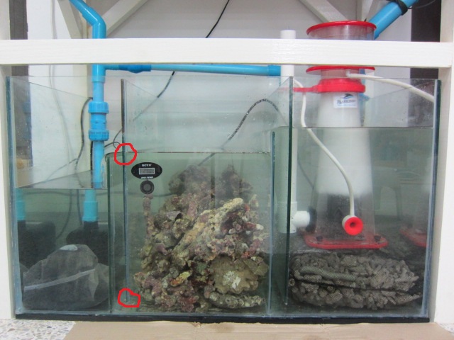 เอ๊ะ แต่ช่องแรก น้ำมนัไหลลงบวกกับน้ำออกจากสกิมเมอร์ไม่น่ามีฝ้านะ [on_003]