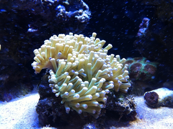 Patrick has since moved on from the hobby but not before propagating the heck out of this strain of BTA and spreading it far and wide around the Mile High city and beyond to the point that sunburst anemones are still regularly brought into the local fish stores as a trade in. While perusing Elite Reef today we noticed that they had an awesome example of both the sunburst bubba tip and the rose bubba tip, and we realized that we had not yet shared this now classic anemone strain that rocky mountain reefers can enjoy. Even in this hastily shot phone picture the difference in coloration between the two strains of bubble tip anemone is very apparent