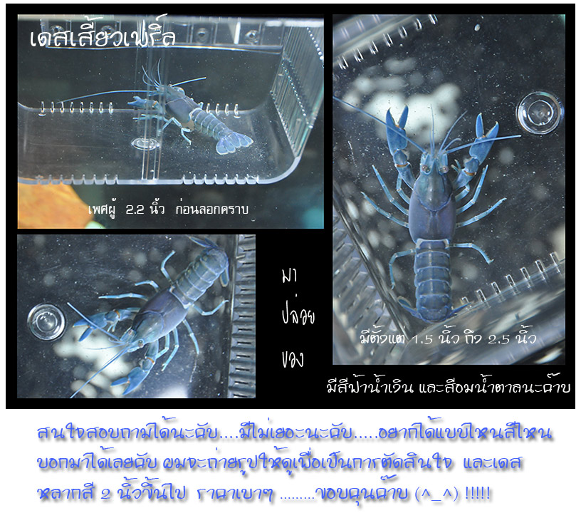 ปล.เพศเมียตั้งแต่ไซส์ 2.5 นิ้ว ราคาจะแพงกว่าตัวผู้นะคับ สีของกุ้งและความสมบูรณ์ด้วยคับผม ถ้ารับเป็นคู่ผมคิดราคาให้พิเศษเลยค๊าบ