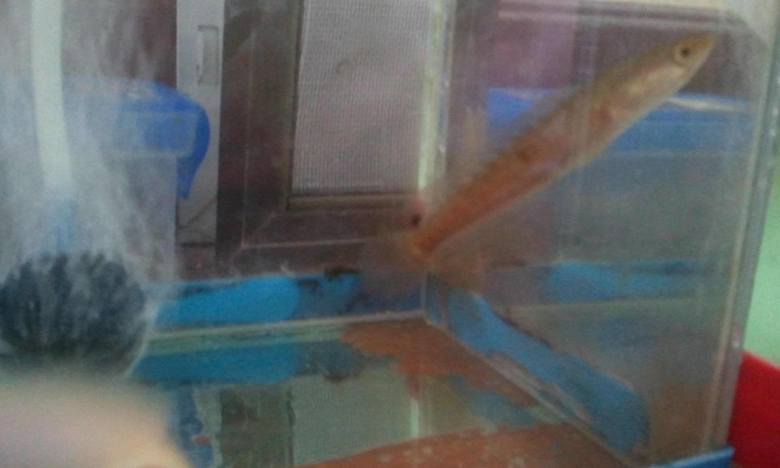 ใ่นบ่อแต่ไม่ทันใส่ แค่พักปลาไว้ในถัง ทิ้งไว้กลับมาดูอีกที มันโดดออกมาตาย สงสัยไม่อยากอยู่กับผม