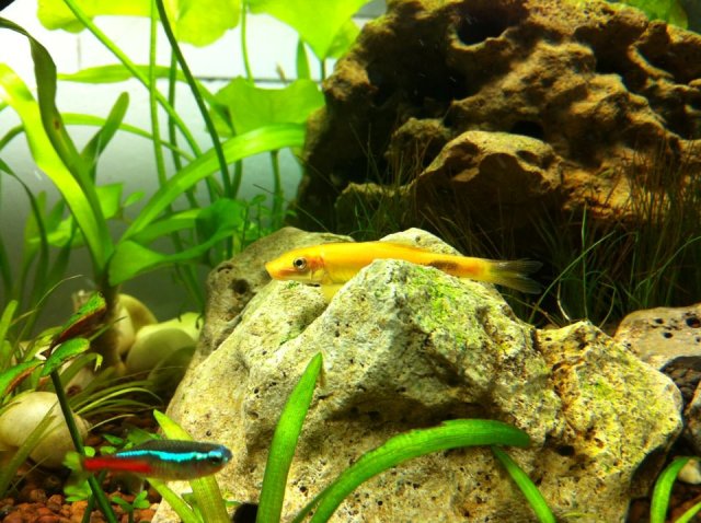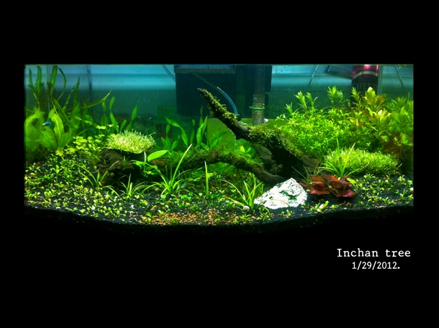 ผมว่าถ้ามีจำนวนหินแบบก้อนสีขาวเพิ่มสักหน่อยจะดูเป็นธรรมชาติขึ้นครับ ตรงกลางตู้อาจใช้ต้นไม้เสกลใบเล็กน่าจะเหมาะกว่า ชอบที่เอาขอนมาวางพาดกลางตู้ครับ ดูเหมือนสะพานธรรมชาติ [เจ๋ง]