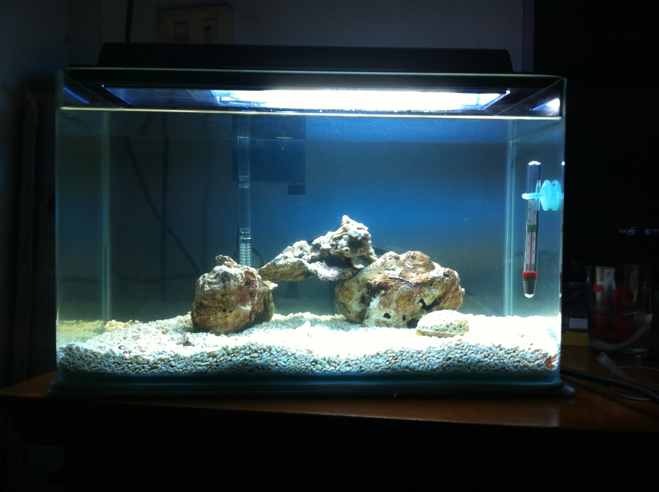 ตอนนี้ตั่งตู้รันระบได้อาทิสนึงแล้วครับ ตู้นาโน 18นิ้ว สูง9นิ้ว ลึก7.5  กรองแขวน ไส่เศษปะการังแล้วครับ