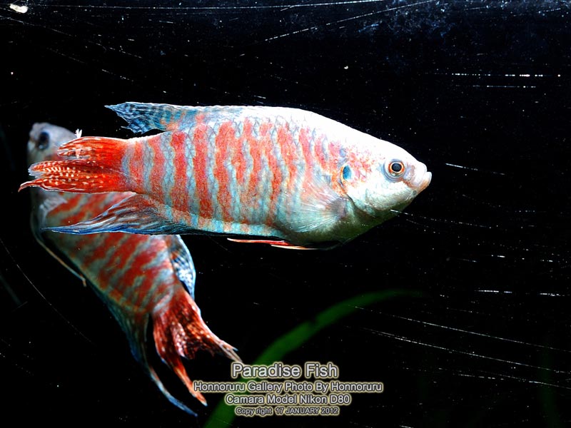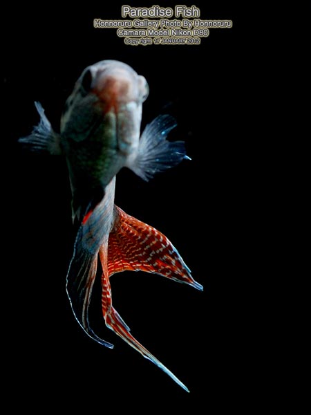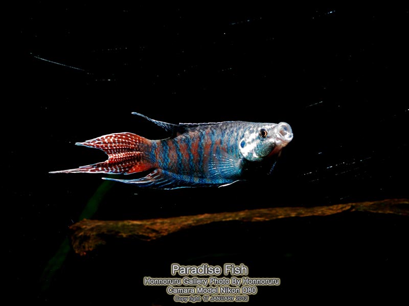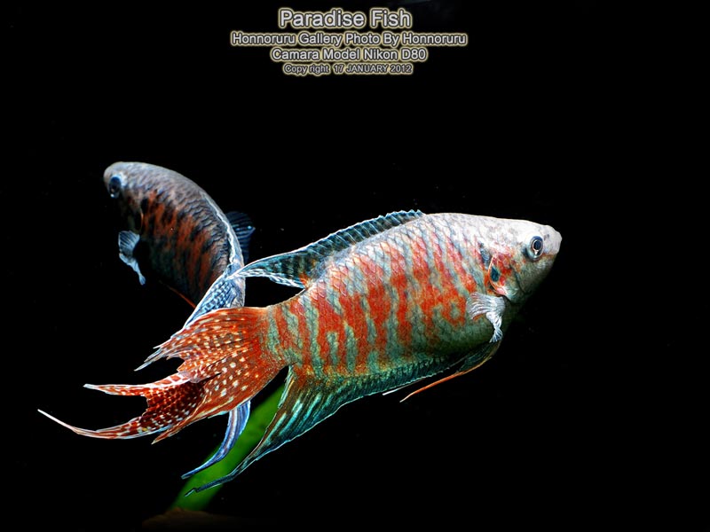 ครั้งนี้มาพบกับ PARADISE FISH ปลาตัวนี้เป็นปลาในฝันของผมเลยครับเคยเลี้ยงมาตั้งแต่สมัยเด็กๆแต่เข้าใจผิดว่าเจ้า paradise fish นี่เป็นปลากัดผมเลยจับใส่โหลปลากัดหมักน้ำใบหูกวางอย่างดี (ก็สมัยก่อนมันไม่มีอินเตอร์เน็ตเหมือนสมัยนี้นี่) หาข้อมูลเจ้าปลาตัวนี้ยากมากพอเจอข้อมูลก็ ปลาก็ไปสวรรค์ตามชื่อมันเลยทีเดียวข้อมูลที่ผมหได้สมัยนั้นก็มาจากหนังสือ "การเพาะพันธุ์ปลาตู้" แต่ในหนังสือก็ให้ข้อมูลว่าเป็นปลาวงค์เดียวกับปลากัด(อันนี้ผมก็ยังไม่แน่ใจ) อ่านจากหนังสือAQUARIUM BIZ ก็เลยเกิดแรงบันดาลใจว่าต้องหามาเลี้ยงให้ได้และประกอบกับพี่ป้อง (Dyckia) เอามาลงในเวปด้วยแล้วน้ำลายหยดลงพื้นแหมะๆเลยครับและแล้วสวรรค์ก็เป็นใจได้มีพี่คนนึงในเวปหามาขายได้จำนวนนึงผมเลยรีบไปรับมาอยู่อย่างว่องไว 555 เลยสอยมา 6หน่อแถมราคาไม่แรงด้วยครับยิ่งเอามาเลี้ยงในตู้ไม้น้ำแล้วด้วยสวรรค์ชัดๆ บ่นมาก็มากมาชมปลาสวรรค์กันเลยครับพี่น้อง ้hahaha