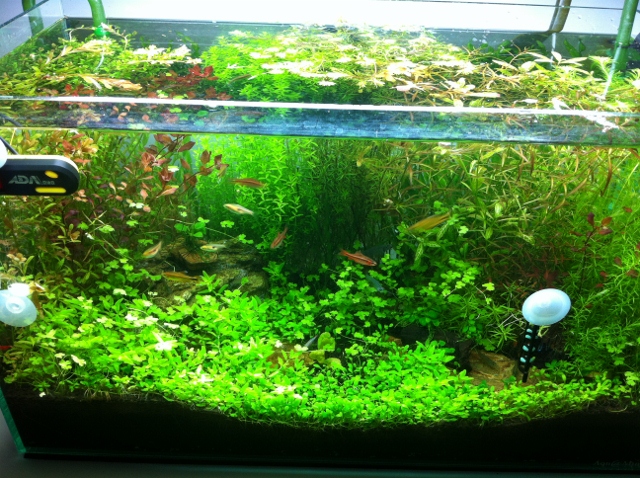 ระบบรองพื้นปลูก : หินคีริก้าผสมด้วยปุ๋ยรองพื้น Aqua Base และแบ็คทีเรียผง HQ Bac