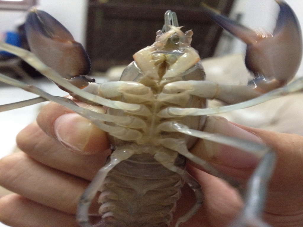 1. 3 นิ้ว ก้ามขาด 1 ข้าง ขาขาด 1 ข้าง สีตอนเลี้ยงตะก่อนสีน้ำเงินนะครับ ตอนนี้น้ำเงินอมม่วงหน่อย