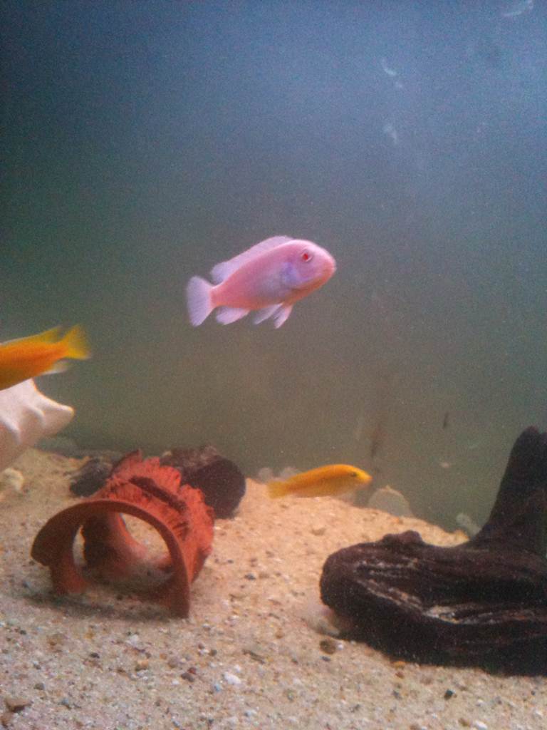 1.ปลาแรดเผือกตาดำ (Lutino) 16นิ้ว 1ตัว