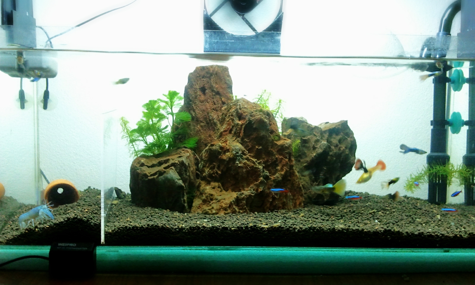 อาหาร : เนื้อหมูสด,กล้วยน้ำว้า,ลูกชิ้นหมู,ลูกชิ้นปลา,อาหารปลาทะเล,ต้นหอม แล้วก็ผักในตู้เย็น (อาหารเม็ดของกุ้งลืมซื้อ) ้hahaha