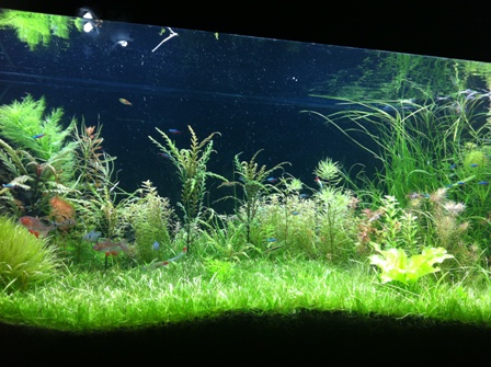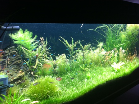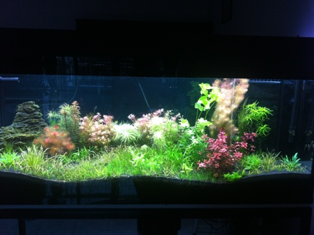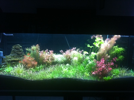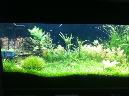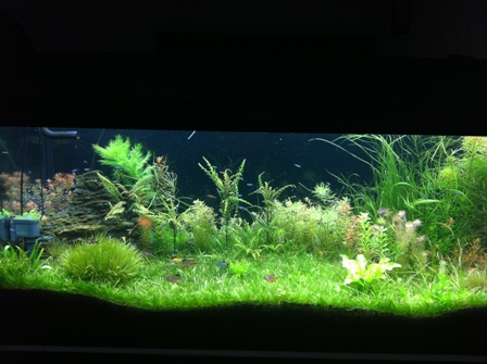 รูปแบบแท้จริงไม่ใช่แบบนี้คับ เปลี่ยนเลเอาท์ไปเรื่อยๆในการปลูกต้นไม้เพราะไม่รู้จริงๆว่าต้นไม้ชนิดไหนต้องการแสงมาก แสงน้อย เลยลองมันไปเรื่อยๆจนเป็นอย่างที่เห็น ผมเพิ่งลงไม้หลังตู้ประมาณ2อาทิตย์ เอาเป็นว่าประมาณเดือนกว่าๆในรูปแบบที่เป็นอยู่ ตอนนี้ตะไคร่ขนดำกำลังบุกคับ