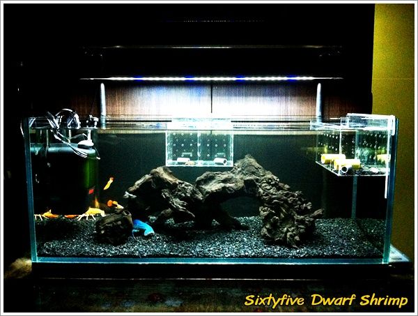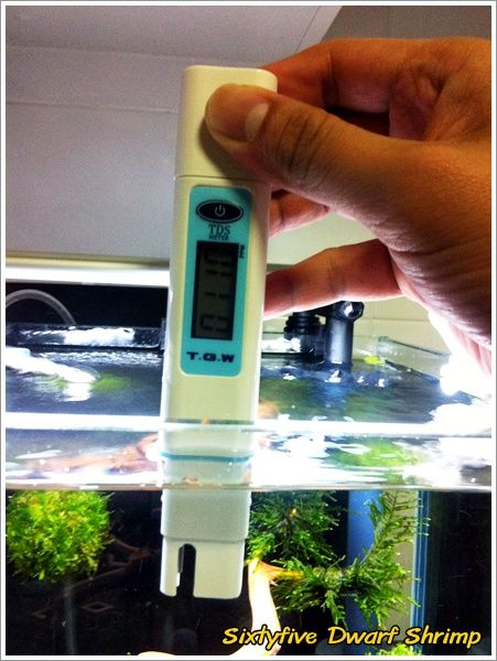 วันที่ 18/10/55 ด้วยความซ่าและใจร้อนอยากจัดตู้ใหม่+เอากุ้งใส่ตู้ (ยังไม่ได้วัดค่าน้ำใดๆเหมือนเดิม) จึงได้เอาลูกกุ้งจากตู้เก่าลงไปทดลองน้ำเพิ่มขึ้น  [on_026]