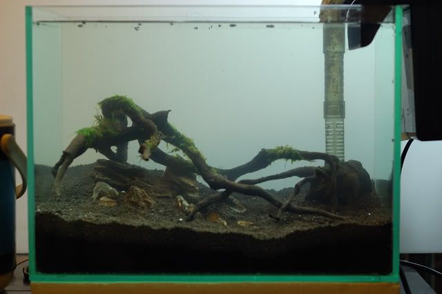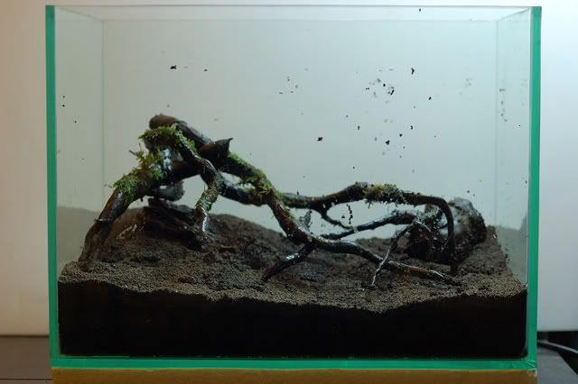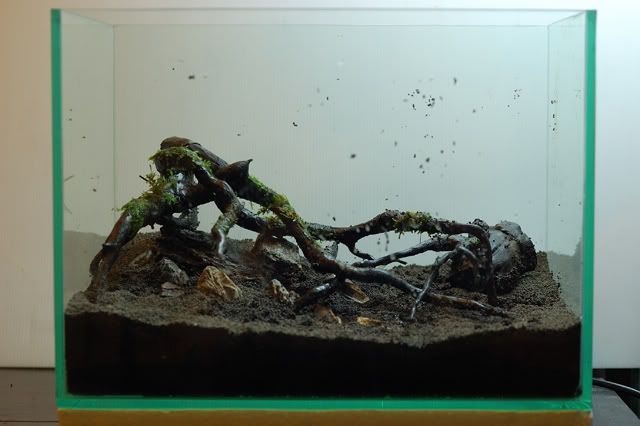วางหินตามแบบ ดูระดับให้เรียบร้อย(ตอนหลังโดน mini hairgrass กลบหมด)