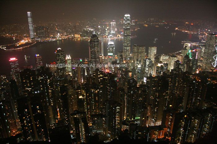 ฮ่องกงตอนกลางคืน เป็นเมืองที่ดูเป็นโลกอนาคตมากๆ ตึกสูงปรี๊ด อยู่กันแน่นๆ เต็มไปหมด