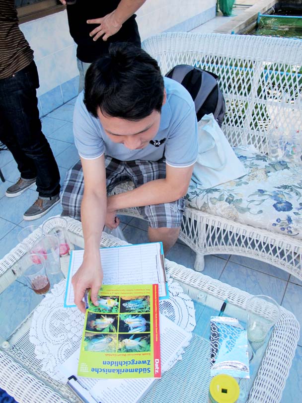 พี่วุธให้ความสนใจกับหนังสือปลาหมอแคระที่เป็นภาษาอังกฤษที่พี่อ๊อดติดมาด้วย
