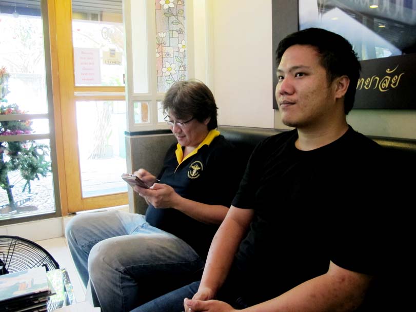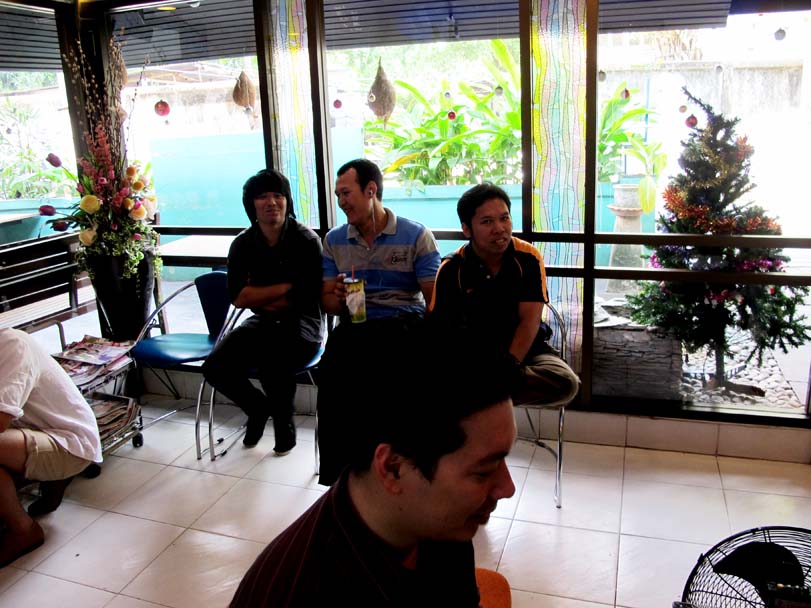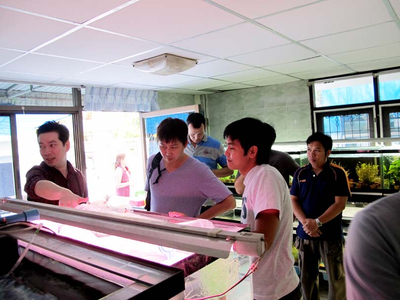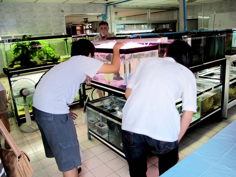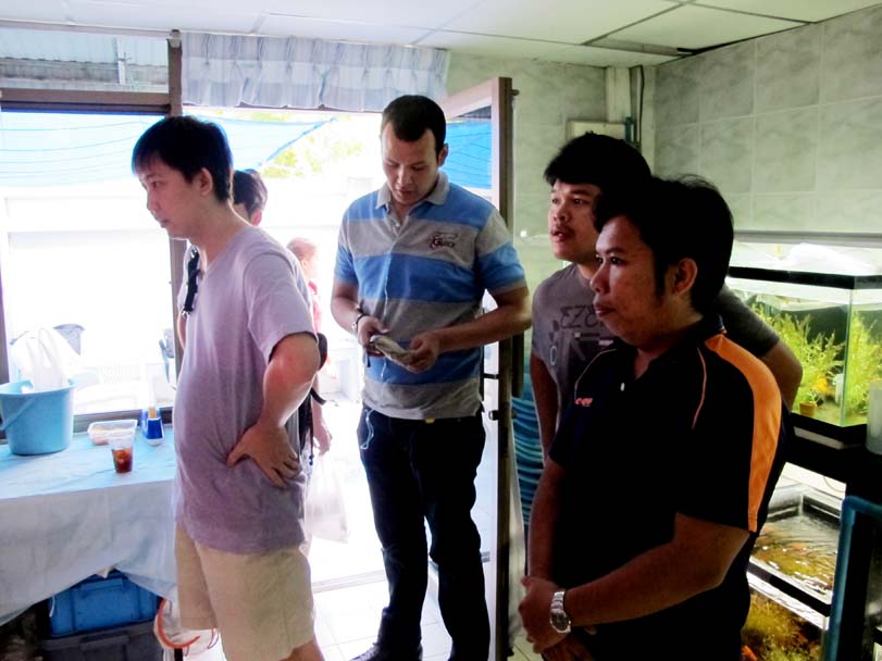หลังจากเลือกซื้อปลากันแบบจุใจแล้ว ก็มานั่งสนทนากันตามภาษาคนรักปลาหมอแคระ