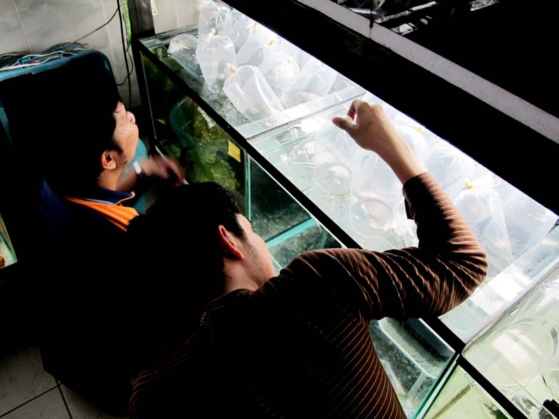 มีขนมคุกกี้และเครื่องดื่มให้ทานระหว่างเลือกซื้อปลา ต้องขอขอบคุณคุณ Bob ด้วยนะครับ