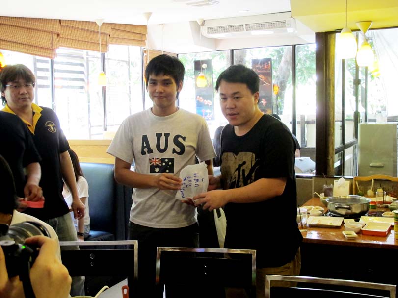 หลังจากทานกันได้ซักพักเราก็มาจับรางวัลกัน พี่เอ็กซ์กับน้องกิต(ต้องขอขอบคุณน้องกิตมานะที่นี้ด้วยนะครับสำหรับของรางวัลที่นำมา Surprise)