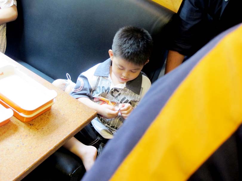 น้องเล็กเสื้อขาวมาร่วมงานกับเราได้ 1 ชม. โดยเล็กต้องกลับไปทำงานต่อ ส่วนสมาชิกน้องเมฆ, คุณปอนด์, พี่เอ็กซ์ นั่งเลือกเมนูอย่างใจจดใจจ่อ