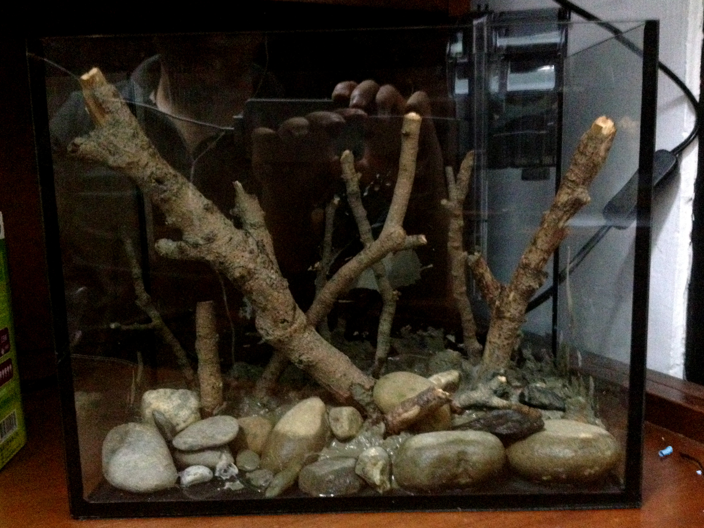 เดินหารอบๆมหาลัย(บ้านนอกสุดๆ)เจอร้านขายปลาอยู่ร้านนึงเลยเดินเข้าไปดู ทั้งร้านเหลือตู้อยู่ 1 ใบ ขนาด 12 หน้าโค้ง ราคา 350 NT (เกือบๆ 400 บาทไทย) ตัดสินใจซื้อพร้อมกรองแขวน 150 NT