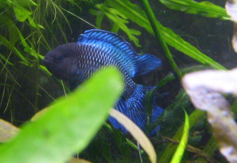 สีน้ำเงินสดของปลาจะตัดกับสีเขียวของพืชน้ำ สวยงามและสะดุดตามากๆ