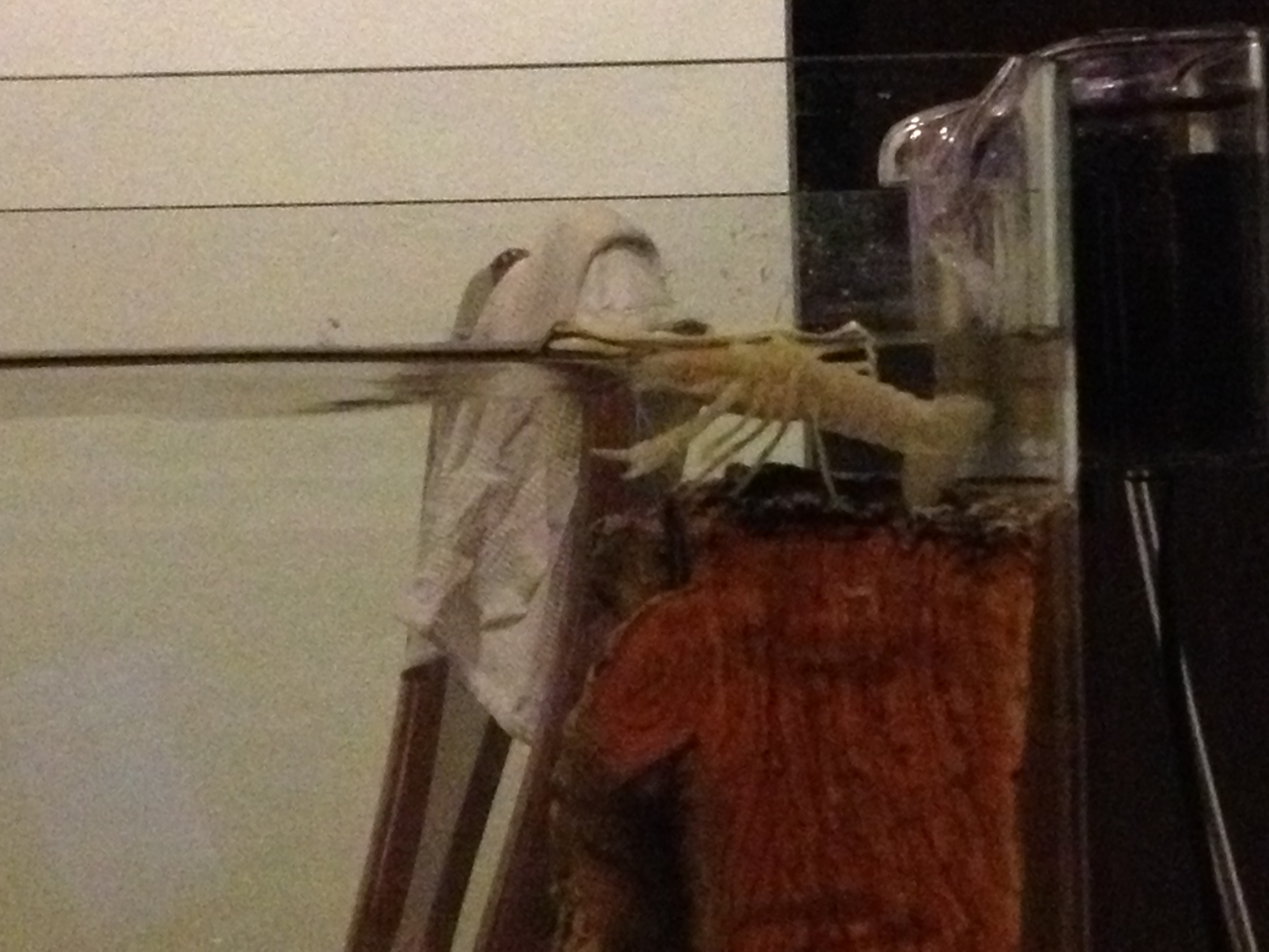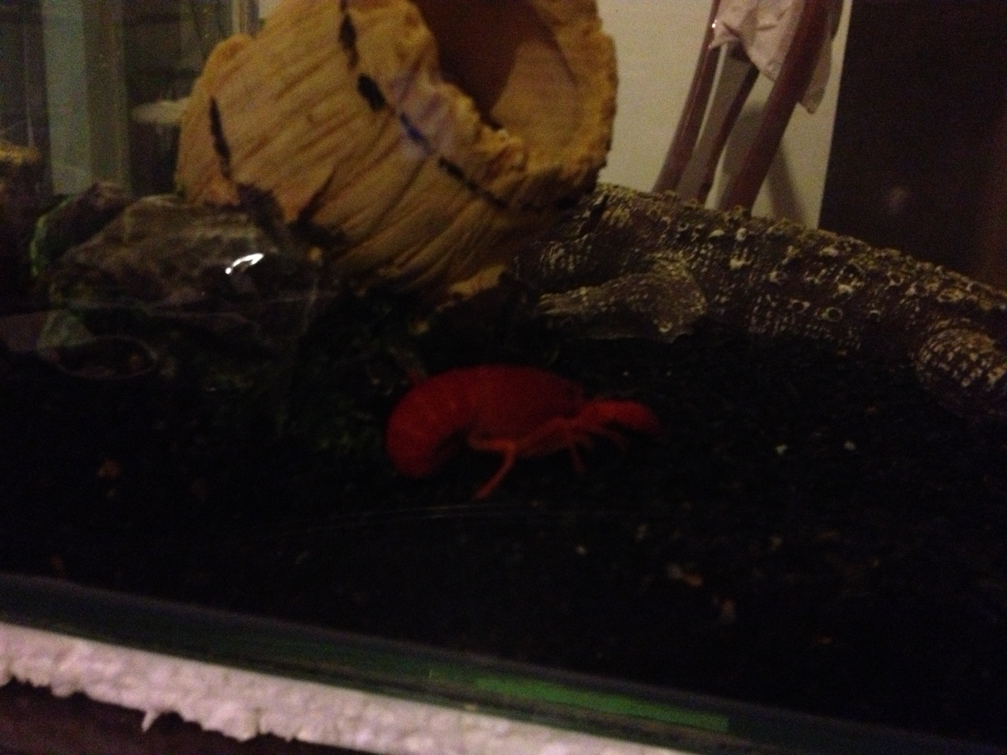 พึ่งเปลี่ยนน้ำ 80% วันนี้ เอาโสนกับนังไบรท์อีกตัวแยกออกมาใส่ถังเดียวกันก่อนล้าง พอล้างเสร็จปุ๊บก็เปิดกรองทิ้งไว้เกือบชั่วโมง น้ำที่เราใช้เติมประจำคือ น้ำถังเนสเล่ พอเอากุ้งๆกลับลงไป ปรากฎว่า ตอนเอาลงใหม่ๆ นังสองตัวนี้เค้าตะเกียกตะกายอยากจะออกมาก ถึงขนาดปีนขึ้นเครื่องกรองเลยทีเดียว เราเลยตัดสินใจลดระดับน้ำดู นังไบรท์ก็ไปนอนข้างๆที่ซ่อน แล้วโสนก็ปีนขึ้นไปบนขอนไม้แล้วก็นอนตะแคงหายใจบนผิวน้ำ เรามีจระเข้ปล่อยอ๊อกอยู่มุมตรงข้ามของเครื่องกรอง แต่ดูเหมือนว่ามันมีอะไรที่ผิดปกติ พอจะดูออกมั้ยคะว่ามันเป็นอะไร พรุ่งนี้เช้ากุ้งมันจะมีชีวิตรอดหรือไม่ [on_051]