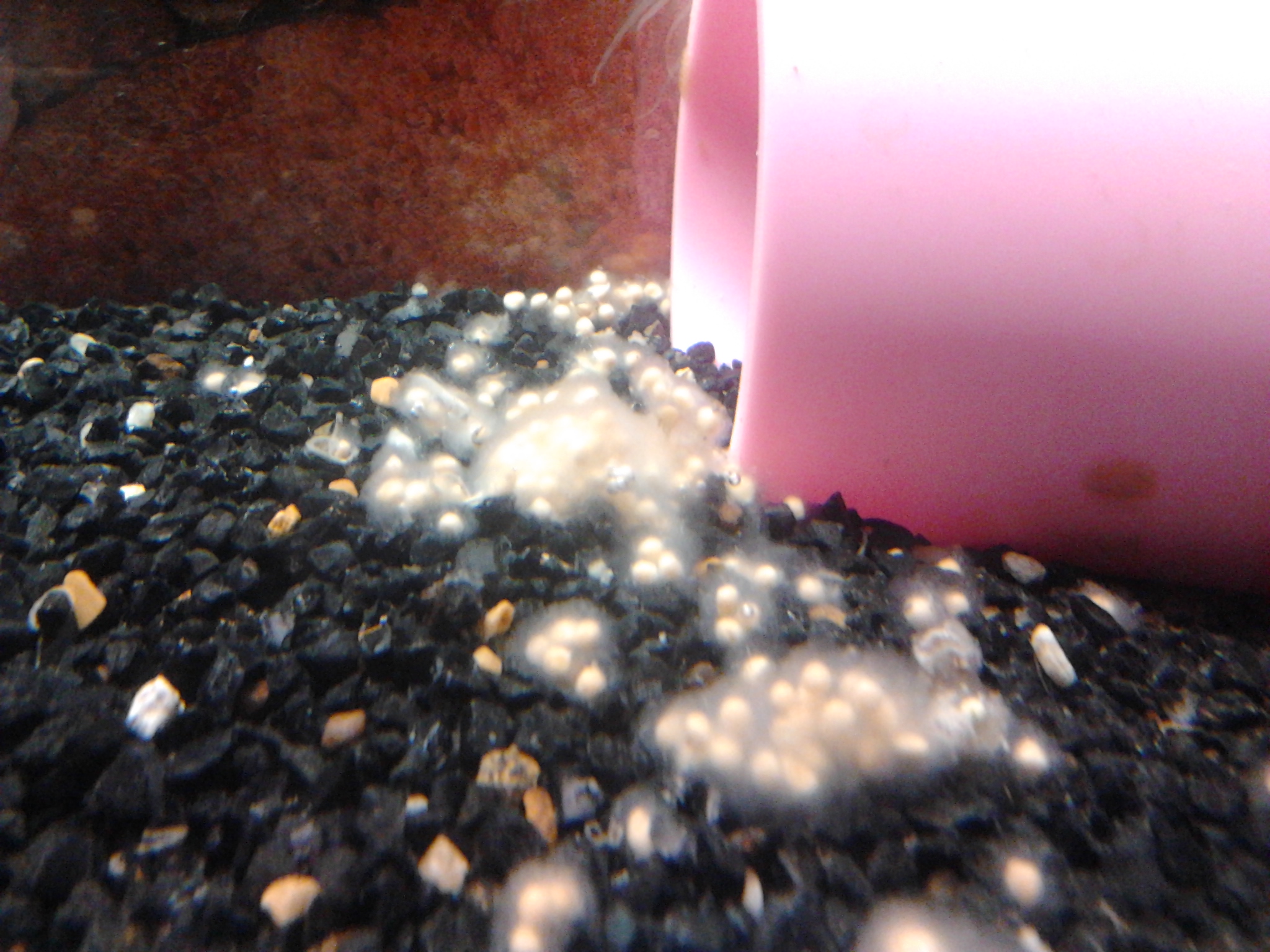 ลักษณะนี้ไม่ใช่เมือกหุ้มไข่นะครับ แบบนี้มันรา(fungus) ขึ้นแล้ว แสดงว่าไข่เสียแล้วล่ะ โอกาสฟัก 0% ครับ ตักทิ้งไปก่อนที่กุ้งตัวอื่นจะมากินดีกว่า