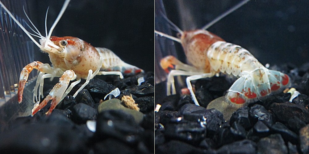 อย่างแรกเลยเป็น P crakii เหมือนกับ ไบร์ท เรด สโน นี่แหละครับ แต่มันเกิดสีที่เเค้าเรียกว่าโกส นี่ คือมันจะมี mark สีขาว ตามตัว หนวด แล้วก็ขา mark จะไม่เปลี่ยนที่เพราะมันไม่ใช่สี จะว่าคล้ายๆ กับ ช้าง เผือก พวกนี้ก็ว่าได้ครับ ยีน ด้อย พวกนี้ จะแสดงยากมาก เกิดจากการ bleeding ข้ามสีกันไปมาหลายๆรุ่นมากๆ แล้วต้องบวก กับความเฮง ด้วย