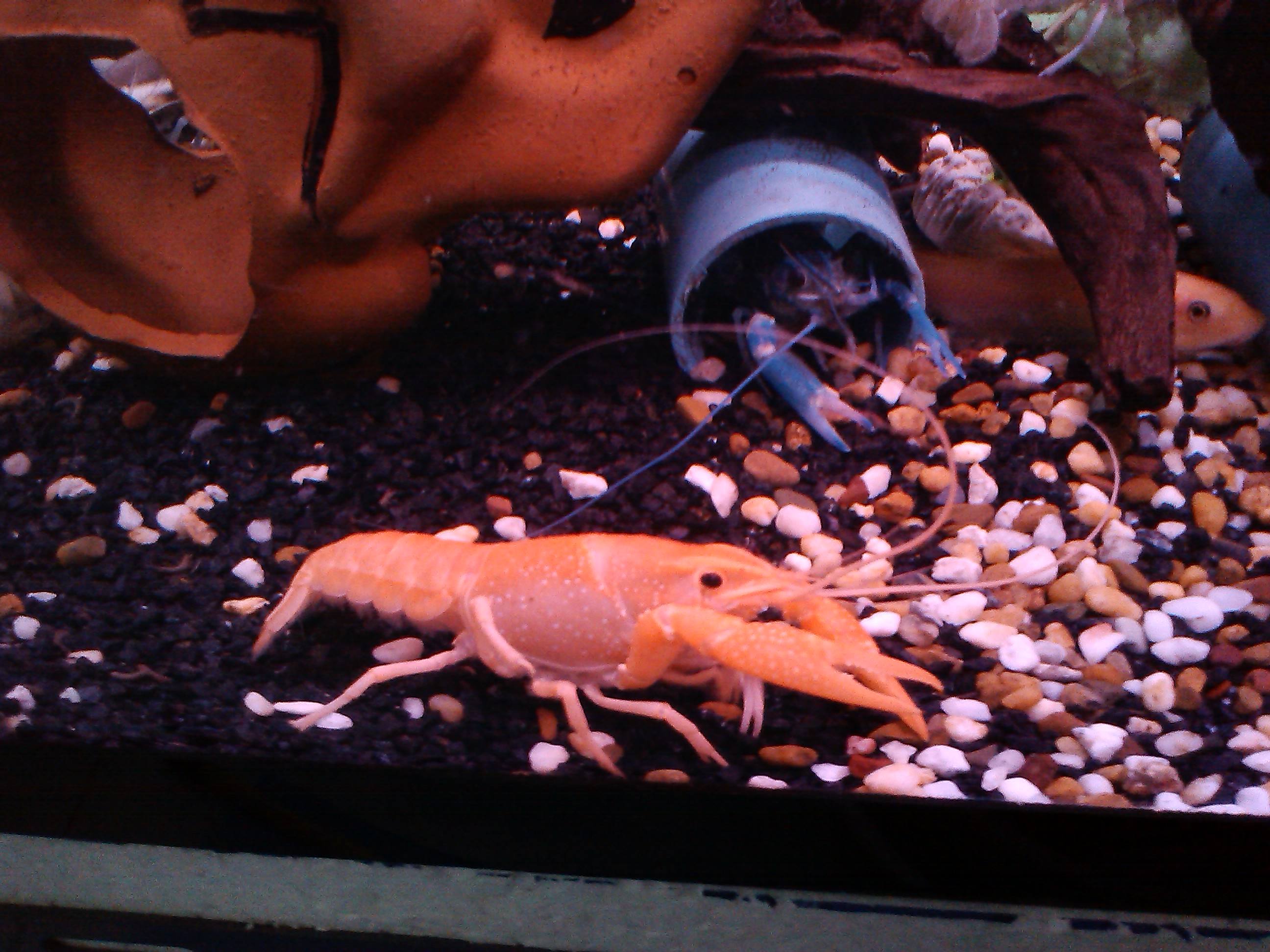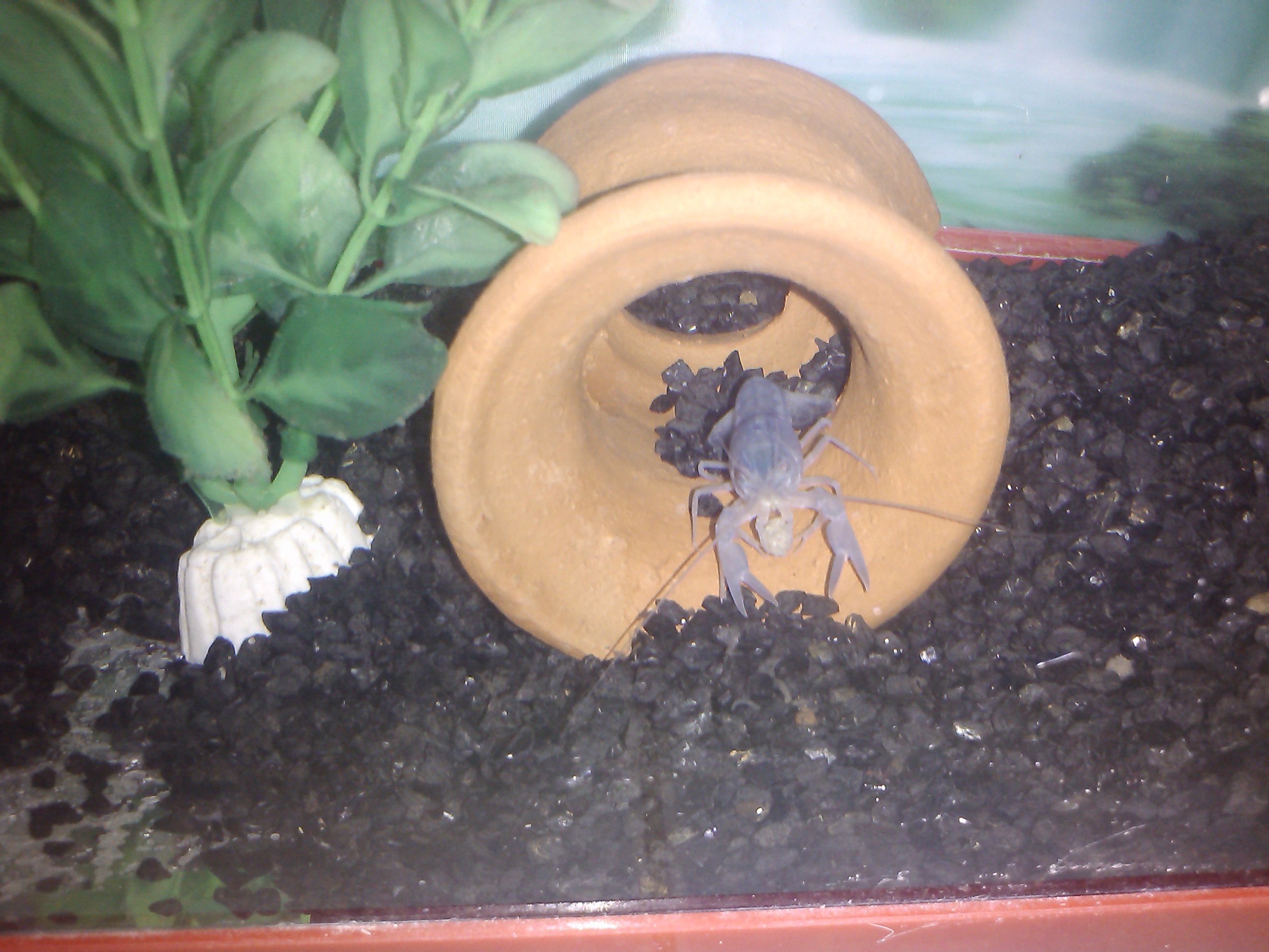 มีรูปกุ้งมาฝากครับ(ตัวนี้ผมเลี้ยงเเยกครับ ตู้นี้จัดเเบบถํ้าๆ ให้เค้ามีที่ลอดไปมา เหมือนธรรมชาติครับ) <พอดี พี่เอ Longhairguy เเนะนำว่าถ้าอยากให้ดูธรรมชาติกว่านี้ ลองหาทรายดำผสมกับกรวดเเม่นั้าครับ ผมจะไปลองซื้อมาทำตู้ดูครับ(ไว้วันไหนไปสวนค่อยจัดมาลอง5555) เเล้วจะเอารูปมาให้ชมครับ