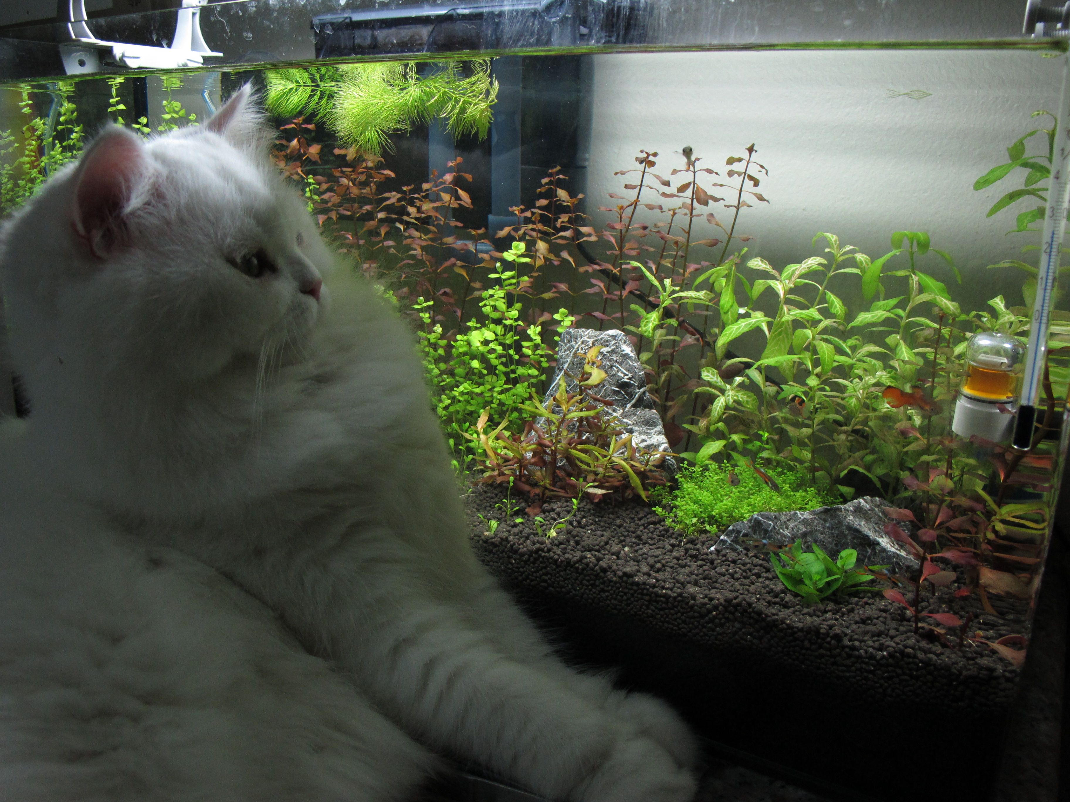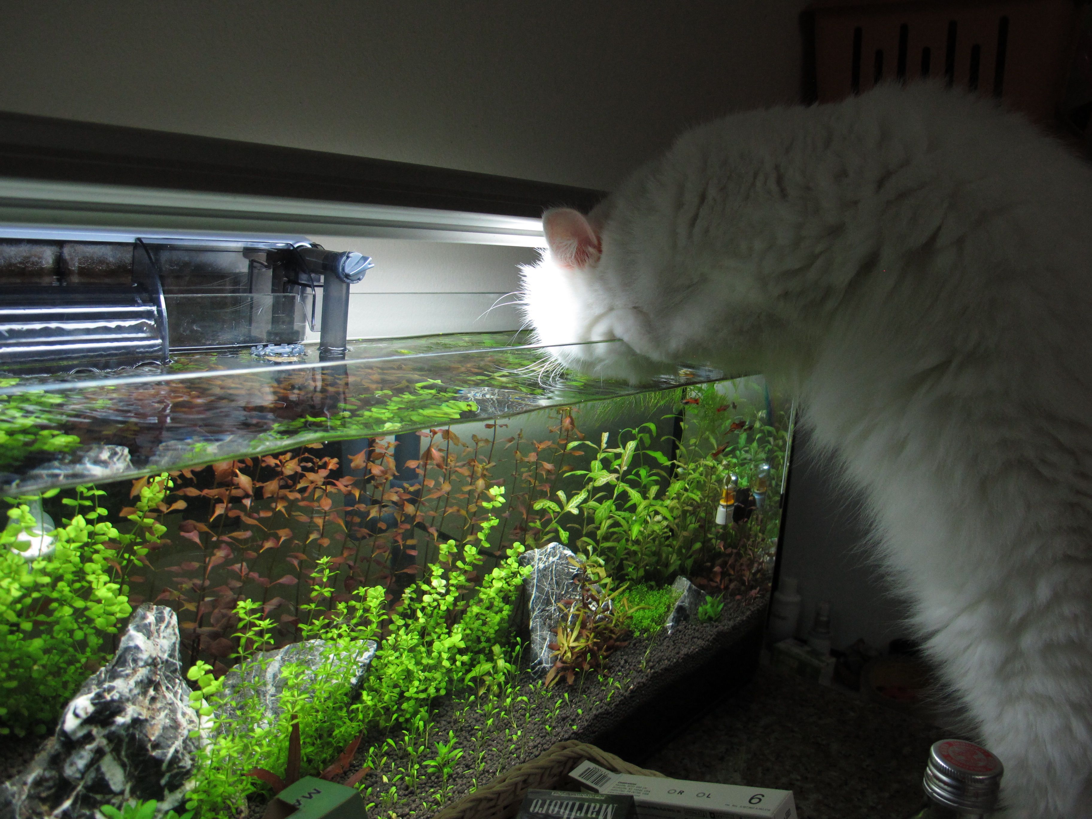 หลังจากที่ผ่านไปเป็นเวลา2วัน ผมก็เลยตัดสินใจที่จะเติมน้ำเข้าไปก่อน เพื่อให้มันกรองจนน้ำใส โดยที่ไม่จัดอะไรในตู้เลย (แมวชอบกินน้ำในตู้ จะเปิดกรองน้ำให้แมวกินก่อน จนกว่าจะมีไอเดียดีๆมาจัด) แต่หลังจากกรองน้ำไปได้ 2วัน น้ำกลับไม่ใสขึ้นและกลายเป็นสี น้ำตาลขุ่นๆแบบนี้ หมายความว่าอย่างไรครับ?? [on_008] ช่วยผมที.. ผมใช้กรองแขวน ตอนนี้ใส่แต่ใยแก้วในตัวกรองครับ ไม่ได้เติมอะไรเลยนอกเหนือจากน้ำ พอไปถามพี่ที่ร้านเขาก็บอกว่าไม่เคยเจอ บอกให้ถ่ายน้ำออก แล้วเติมใหม่อย่างเดียว ผมเลยเกิดข้อสงสัย อยากจะรู้ให้ชัดๆไปเลย ก็เลยมาถามน่ะครับ สงสารเจ้าเหมี่ยว ตอนนี้ต้องเอาแผ่นโฟมมาปิดตู้ปลาไว้ ไอ้เหมี่ยวก็ปีนตู้ทุกคืนไม่ได้หลับได้นอนครับ รบกวนพี่ๆในบอร์ดด้วยนะครับ  [เจ๋ง]