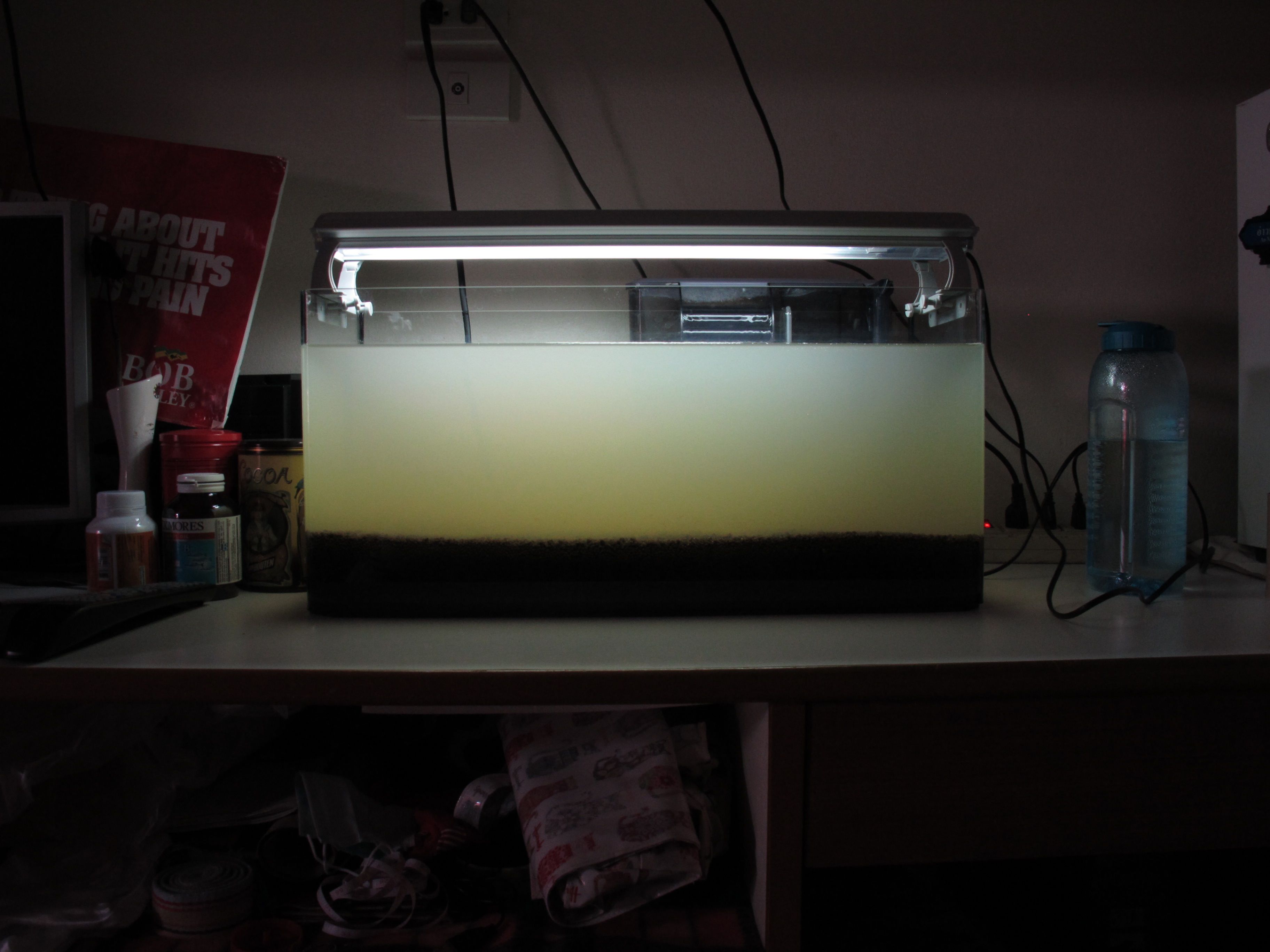 ลองปิดกรองแล้วครับ ผ่านไป 3วัน น้ำยังคงเป็นสีเหมือนเดิมไม่มีเปลี่ยน(คิดว่าขุ่นกว่าเดิมหน่อยๆด้วย) เมื่อเช้าเพิ่งเปิดเครื่องกรองน้ำใหม่อีกรอบครับ กำลังจะถ่ายน้ำออกแล้วลองเติมน้ำใหม่อีกรอบ ก็เลยฉวยโอกาสถ่ายรูปมาถามก่อนเผื่อจะได้คำตอบ