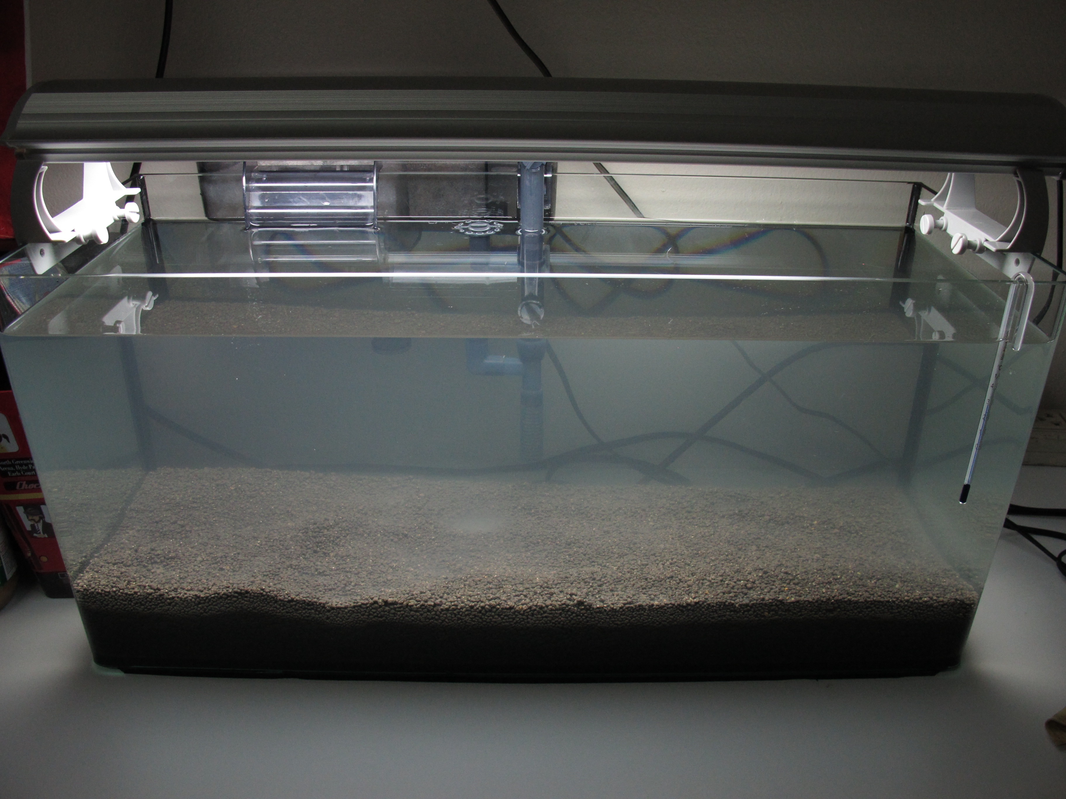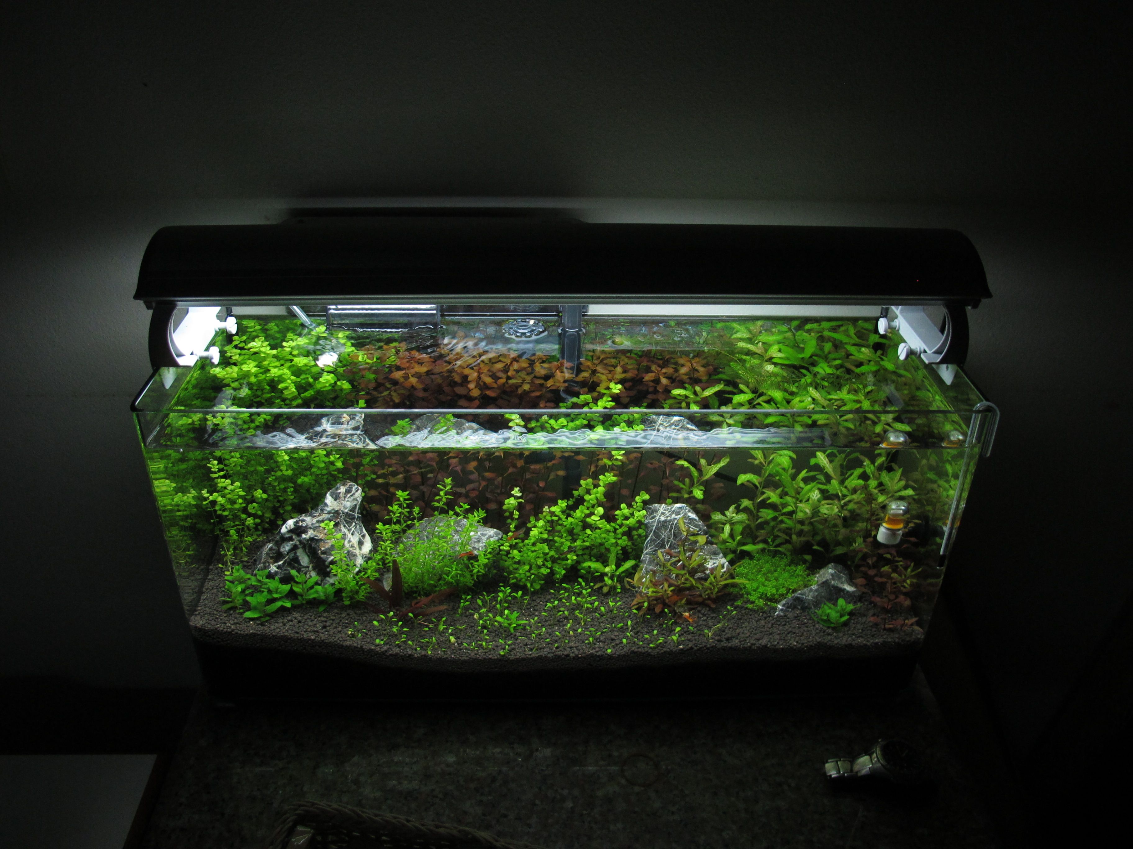 พอดีว่าผมกำลังต้องการที่จะจัดตู้ใหม่อีกรอบ ขนาด 24x9x11 หลังจากที่ตู้แรกได้ขาดการดูแลไปราวเดือนนึงและหลังจากกลับมาเห็น มันก็อยู่ในสภาพน้ำเหลืองๆ (แต่กุ้งยามาโตะยังรอด) ผมก็เลยตัดสินใจเอา หินในตู้และไม้น้ำออกทั้งหมด(ตายเกือบหมด) เพื่อที่จะทำการจัดตู้ใหม่ ตอนที่เอาทุกอย่างออกจากตู้เป็นเรียบร้อยก็ ยังไม่ได้มีเวลามาทำตู้ปลาเป็นเวลา 2วัน ก็เลยปล่อยให้ดินแฉะๆไว้ หลังจากที่ถ่ายน้ำออก...