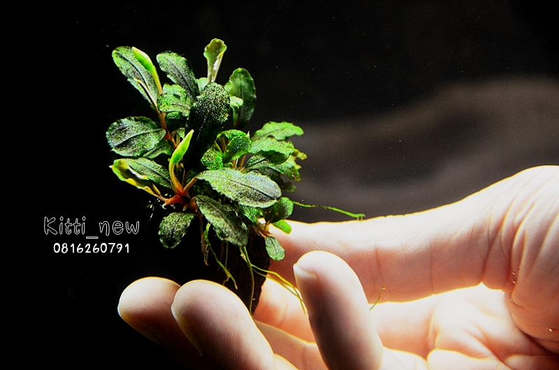 ของแถมชิ้นที่ 2 เป็น "Bucephalandra sp." (เลี้ยงตั้งแต่เป็นหน่อต้นน้ำแท้ 100% อยู่แล้วครับ พอดีได้ต้นแม่พันธุ์จากพี่วิเชียรครับ แต่เนื่องจากผมลืมจดชื่อไว้ตอนที่พี่วิเชียรบอกมา ก็เลยลืมไปแล้วครับ) ลักษณะเป็นบูเซปสายพันธุ์เล็ก แตกกอเก่งมากจนเป็นพุ่ม กอนี้มียอดใหญ่ ๆ อยู่ 4 ยอด กำลังออกดอกเลย และยอดเล็ก ๆ ที่ทยอยงอกออกมาอีก 2-3 ยอด เรื่องระบบราก ก็งอกเกาะหินภูเขาไฟแน่นมากแล้ว ผมให้ยกทั้งก้อนนี้ไปเลยครับ ไม่แกะอะไรออกแล้ว